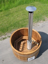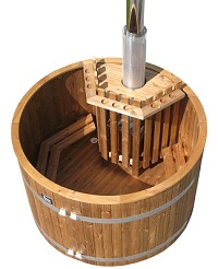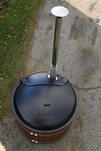 Die Thermowood Badetonne mit SIDE-Heater aus Marine-Aluminium ist mit einem Innenofen ausgestattet. Dieser wird jedoch wie ein normaler Ofen bequem von der Außenseite befeuert. Die Asche fällt in den Aschenkasten und kann wie gewohnt entsorgt werden. Der Ofen kombiniert die guten Eigenschaften eines Außenofens mit denen eines Ofens in der Tonne.