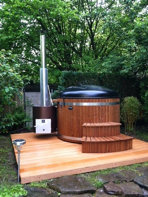 Badezuber aus Holz in Kombination mit heißem Wasser bringt gesundheitliche Vorteile